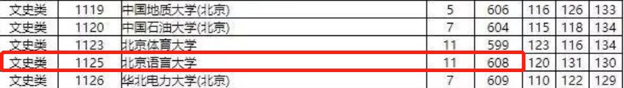 2019年湖南高考,文史类,北京语言大学投档线为608分,分数线超过了江南大学、河海大学等211高校,也超过了东北大学、兰州大学等985高校。