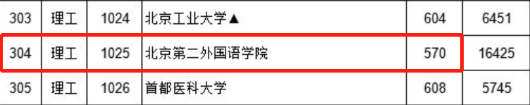 理工类,北京第二外国语学院投档线为570分,分数线超过了南昌大学、太原理工大学等211高校;