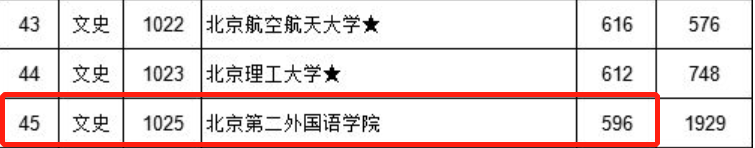 2019年江西高考,文史类,北京第二外国语学院投档线为596分,分数线超过了东北师范大学、郑州大学、西北大学等211高校;