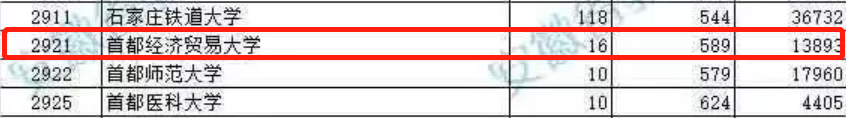 理工类,首都经济贸易大学投档线为589分,分数线超过西北大学、太原理工大学、中国地质大学(北京)、中国地质大学(武汉)等211高校。