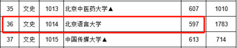 2019年江西高考,文史类,北京语言大学投档线为597分,分数线超过了西南交通大学、郑州大学、西北大学等211高校;