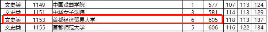 2019年湖南高考,文史类,首都经济贸易大学投档线为605分,分数线超过西北大学、郑州大学等211高校;