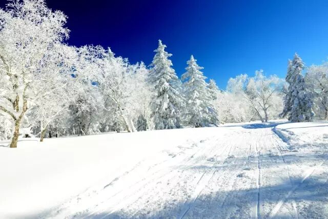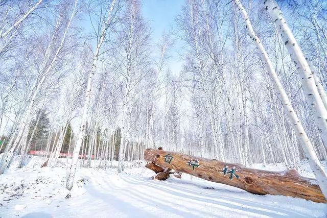 注:冬天白桦林里面被大雪遮盖住,地势坑坑洼洼高低不平,走路游玩的时候要谨慎小心。