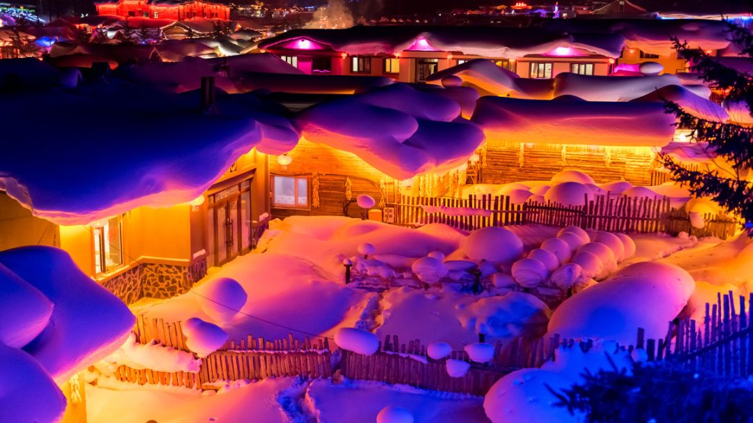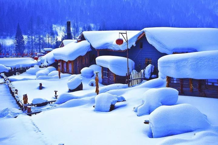 雪乡的夜景尤为美丽,洁白如玉的白雪在大红灯笼的照耀下,宛如天上的朵朵白云飘落人间,幻化无穷。像是一个不真实的童话世界,灯光映衬着积雪,行走其间,恍若穿越。