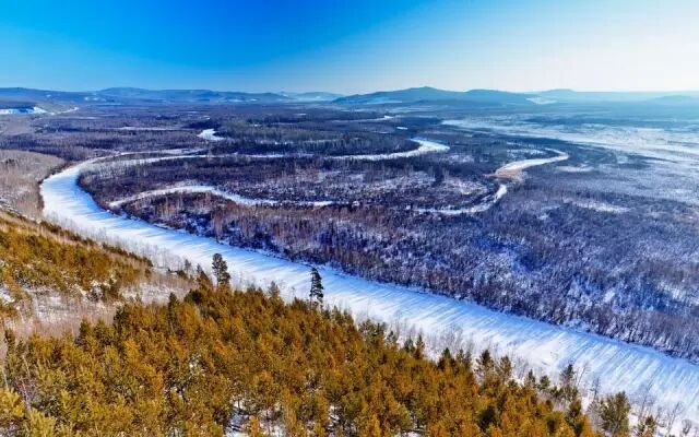 来到漠河,一定要看看【黑龙江第一湾】,这里,风光旖旎、人迹罕至。宽广的中俄界河黑龙江对面就是俄罗斯的山,山下就是俄罗斯的村落。茂密苍茫的白桦林松树林与皑皑的白雪一望无际,非常壮观。俯瞰江中小岛就像一弯月亮,四周群山环抱,日,月,江,山在这里浑然天成,水乳交融。