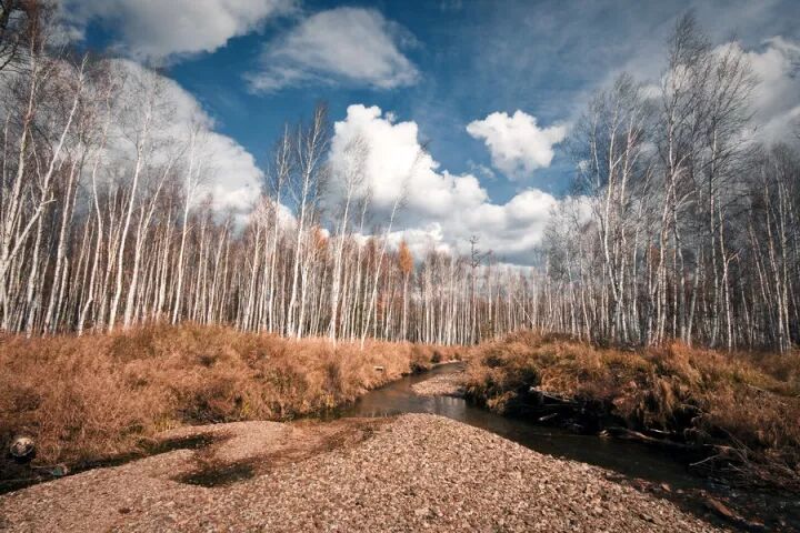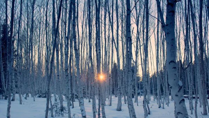 整片的白桦姿态优雅伟岸,笔挺的树干直入云霄,好像一个个守卫边疆的战士。