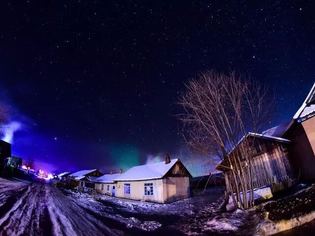 北极村的夜晚繁星满天,古朴静谧,每年夏至前后,幸运的人还可以看见绚烂多彩的极光。