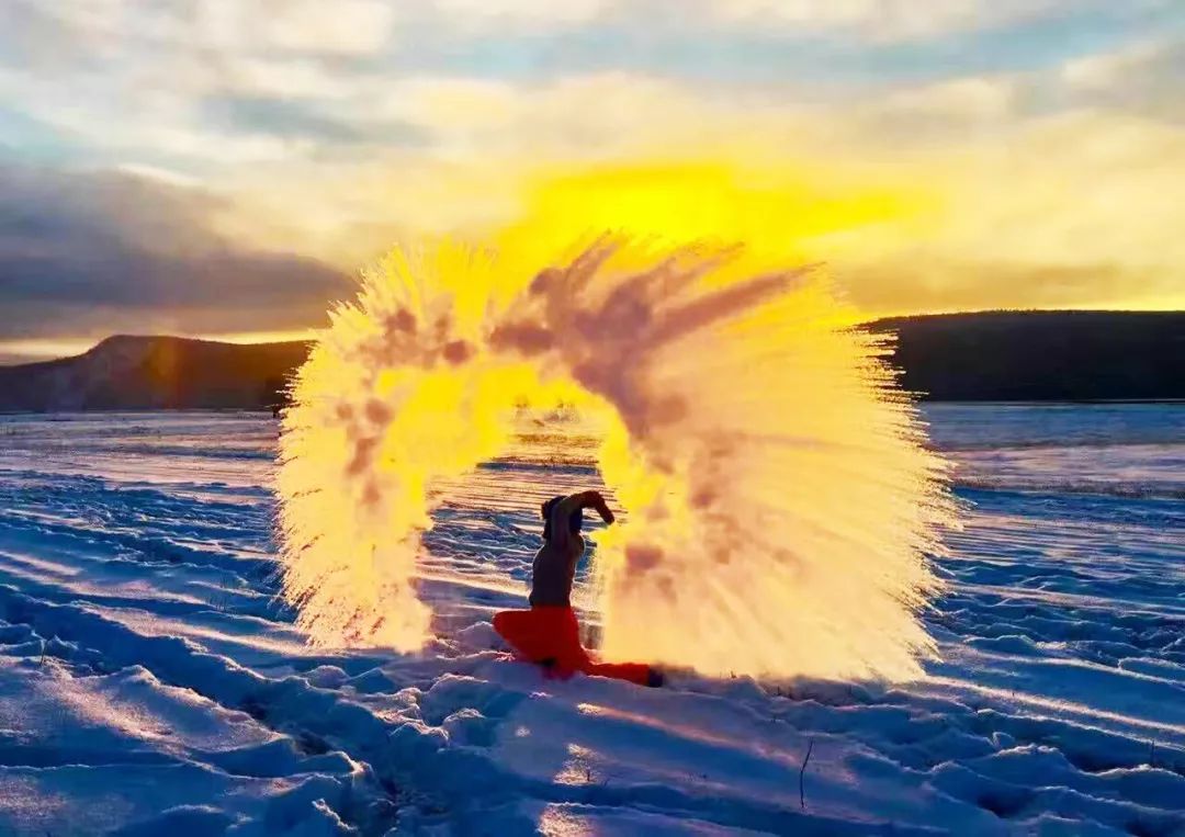 来到极寒之地漠河,亲子体验一把帅气的泼水成冰是很多人的想法,这里零下四十度的温度也让这个场景很容易实现。不过记得泼水一定要泼热水,最好是开水,因为开水的雾化的效果特别明显,遇冷空气更容易成冰,也更容易拍出如下场景。