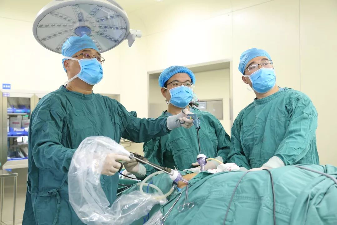 患者一入院,吴大鹏副院长便亲自来到病房询问患者病情,查看病例,并最终确定手术方案。两天后,吴院长带领泌尿外科团队,在手麻科的配合下,为患者顺利实施“后腹腔镜下左侧输尿管癌根治术”手术,手术切除范围包括:左肾、左侧输尿管以及部分膀胱。手术历时两小时零五分钟,术中出血不到10ml,患者于当时下午恢复排气并进食。