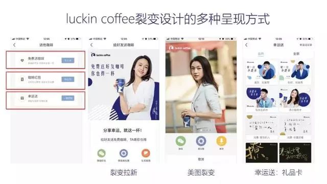 你可以通过这三种社交关系链设计千变万化的裂变形式。比如我们使用过美图裂变、礼品卡裂变、游戏裂变等等,还包括明星、IP、电影、电视剧,但就算最火的电影电视剧其分享率也很难超过30%。但你用游戏裂变很轻松就可以超过30%,因为玩游戏是天性,每个人都想试试手气。