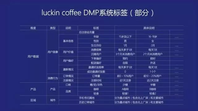 比如luckin coffee的用户可以打出一千多种标签,用户画像已经比较精准了。男孩还是女孩?喝冰的还是热的?社交能量如何?常喝咖啡的场景?我们都可以定义用户,当然,在阿里系、腾讯系或者头条系,标签的颗粒度会更细,更立体。标签越多,画像越精准,营销转化效率就越高。