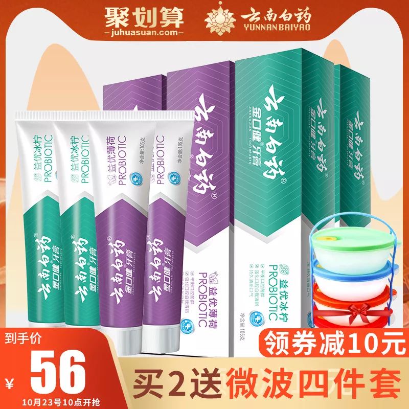 云南白药旗舰店 益生菌牙膏套装 券后价46元包邮 赠运费险 云南白药牙膏益生菌420g,口气清新去口臭套装冰柠激爽薄荷持久清新,缓解口腔问题,持久清新,加倍呵护,健康口腔,减缓牙龄出血,全家人的口腔专家。