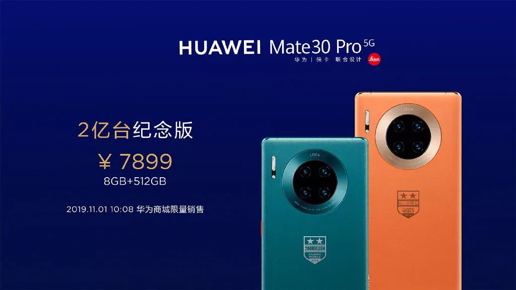 华为今天推出了Mate 30 Pro 5G 2亿台纪念版,8GB+512GB售价7899元,还公布了Mate 30系列5G版的售价,并且发布了国行版华为Mate X 5G,8GB+512GB售价16999元。