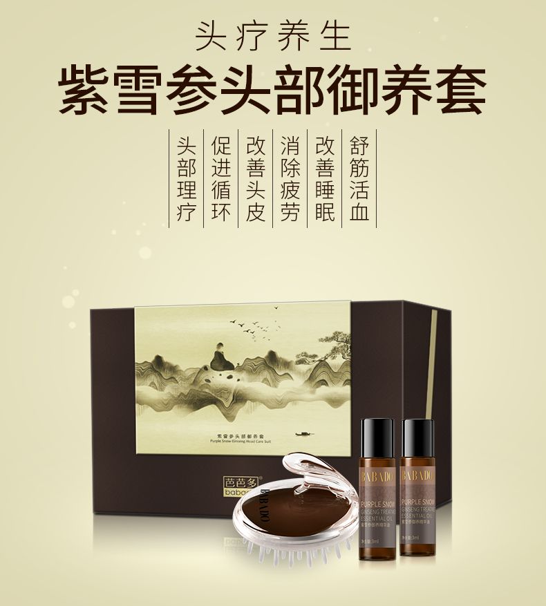 古色古香的设计,针对性改善头部血液循环、疏通经络的产品,配合头部御养气垫梳,注定成就紫雪参头部御养套的销量传奇!