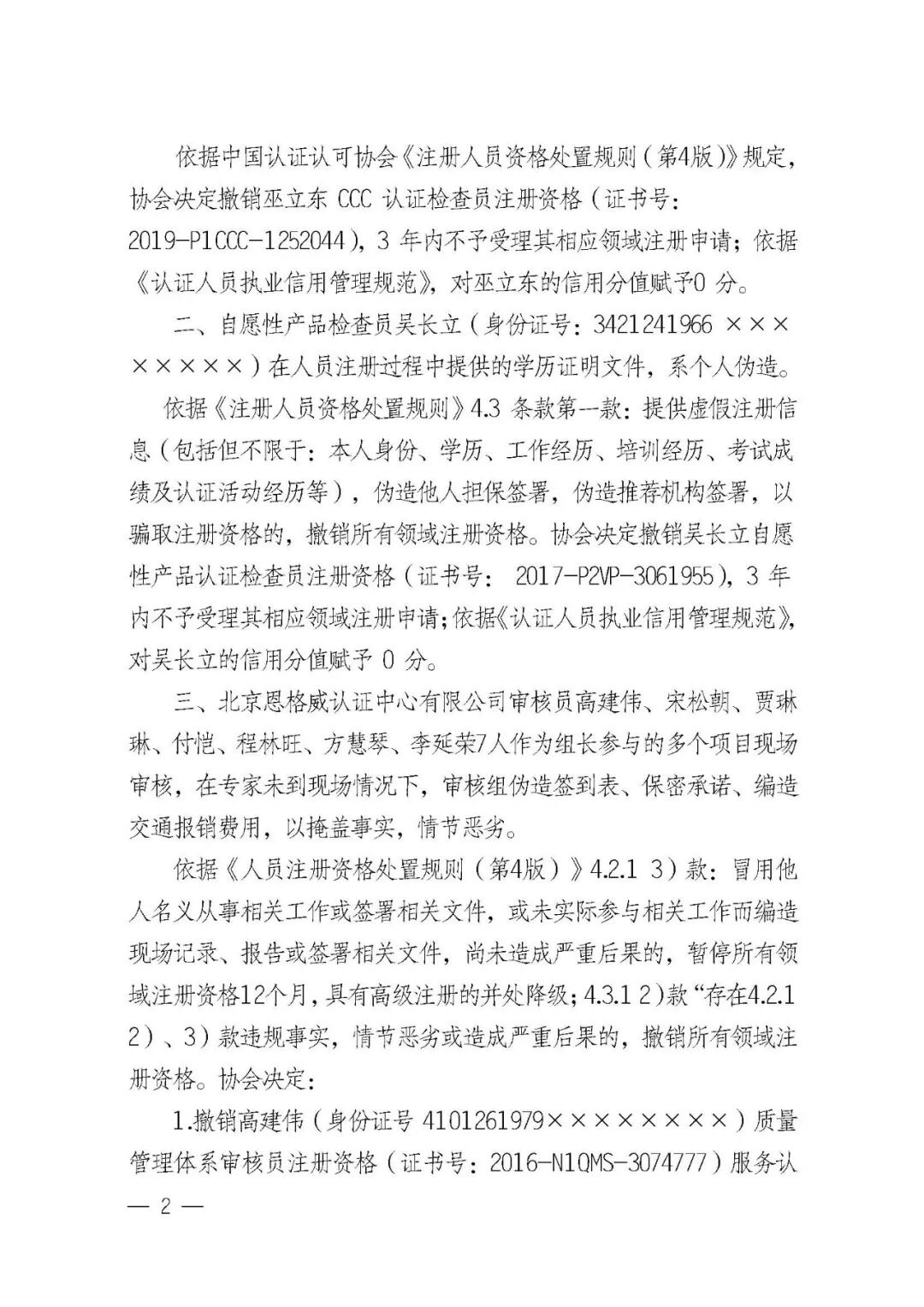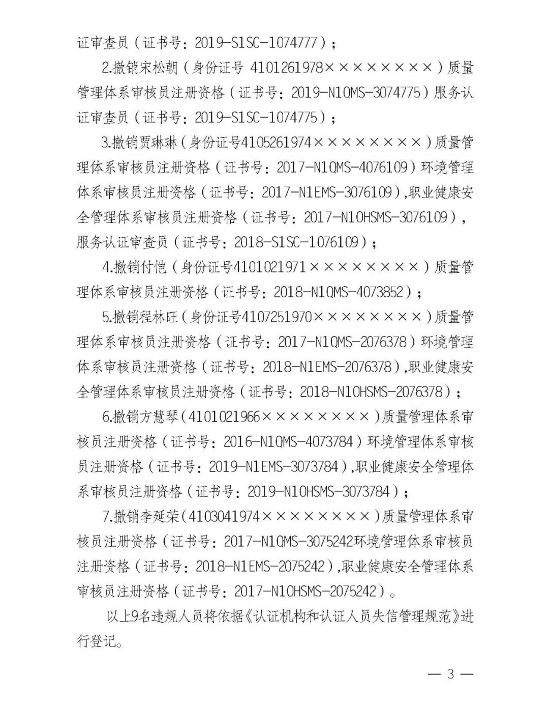 警示丨撤销9人注册认证人员资格