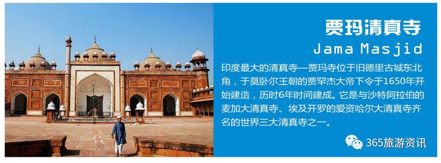 【贾玛清真寺Jama Masjid】(入内参观)全印度最大的清真寺,也是“世界三大清真寺之一”。“贾玛”意为“星期五”,两支尖塔与白色的伊斯兰圆顶在阳光下闪耀着光芒。由主张建造泰姬陵的沙?贾汗下令修建,每周五和节日,这里会举行仪式。也许这里没有印度教寺庙那般色彩纷呈,但静默的祈祷人们会带来肃穆宗教的氛围。