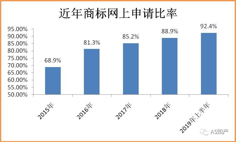 (五)商标公共服务水平持续提升。2019 年上半年,商标网上申请量 317.6 万件,占申请总量的 92.4%,同比提高近 3.5 个百分点,商标网上服务系统电子发文 1132 万件。截至 6 月 30 日,已接受网上服务系统用户协议的用户量累计达 90429 个,其中代理 24433 家,法人或其他组织 54651 个,自然人 11345 个。上线驳回复审案件应诉远程审判系统,驳回复审案件集中应诉全面展开。