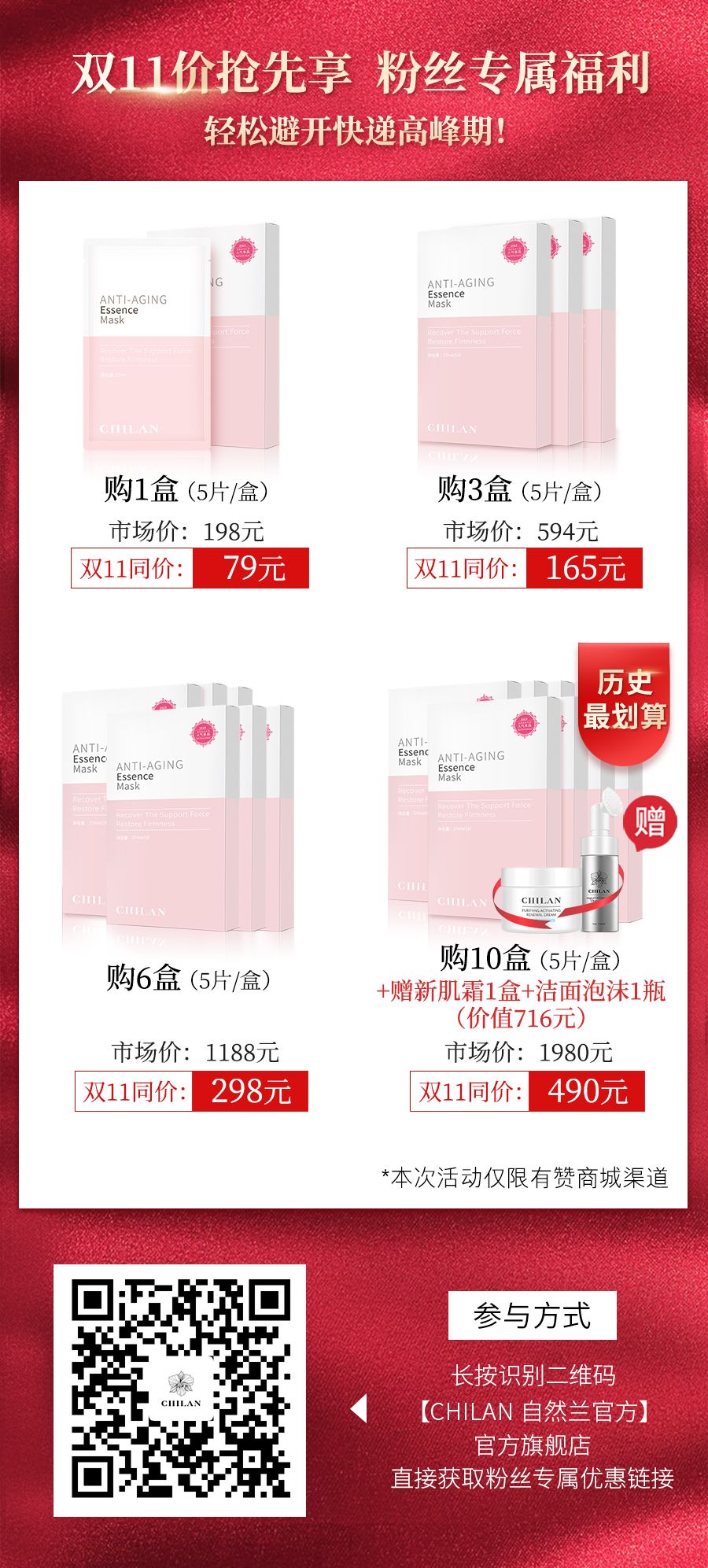 送价值¥198的童颜面膜1盒~