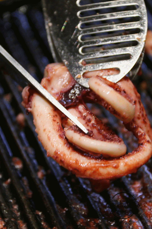 鱿鱼须是我的最爱,来上点香菜和洋葱一起烤,烤到微微卷曲,吃起来弹性十足,脆脆嫩嫩,鲜香入味儿,秘制酱料让鱿鱼味道吃起来更加有层次。