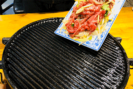 烤牛肉就是要一次全部推到烤盘上,葱与香菜的完美调配使得牛肉散发出无与伦比的香气。
