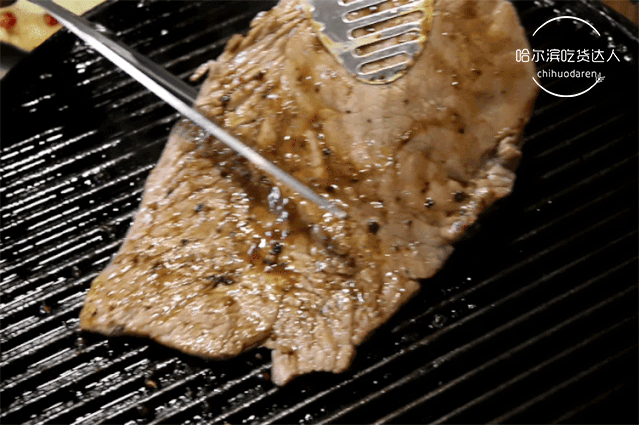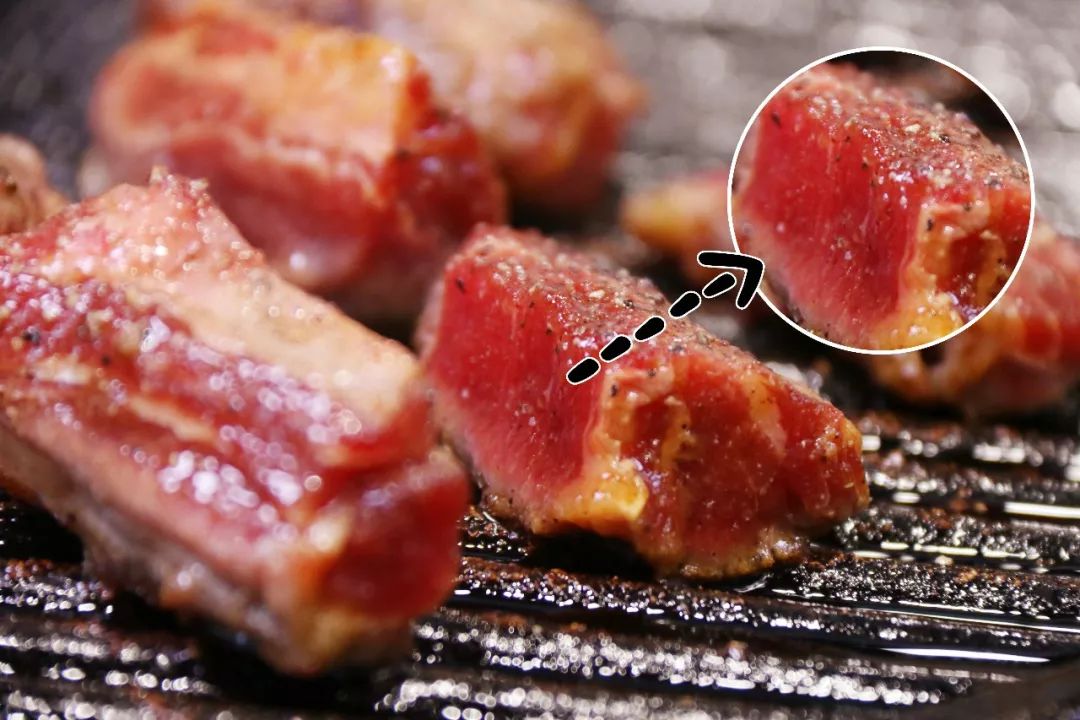 煎烤的差不多剪成一块块,鲜嫩又多汁,黑胡椒和牛肉的复合味道,入口超满足!