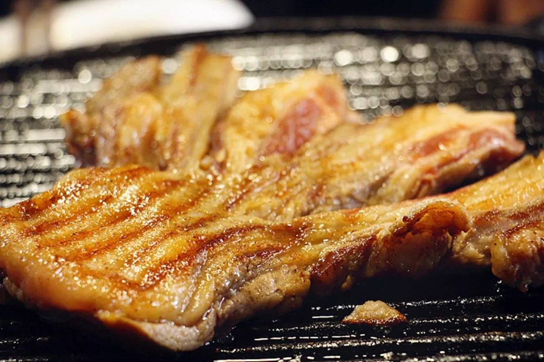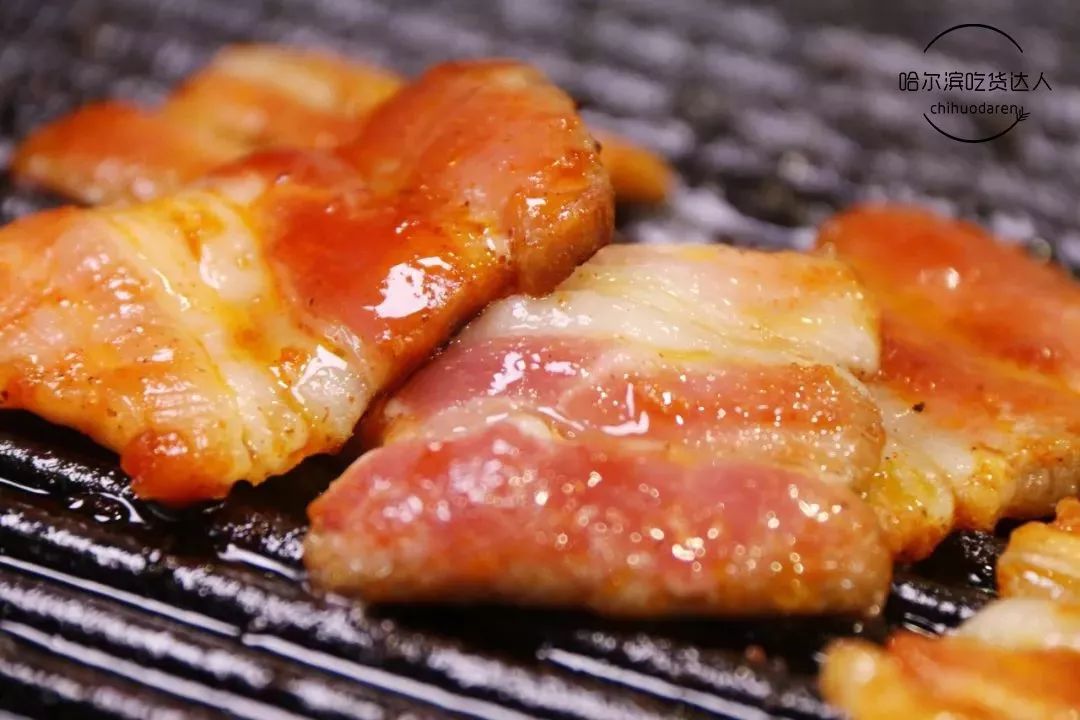 吃烤肉的时候怎么能少了五花肉呢,五花肉肥瘦相间让人食欲大增,没多久就被烤的鲜嫩诱人,大口吃肉的感觉才开心呢~