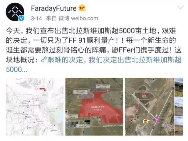 为尽快筹集资金,此前贾跃亭在国内还曾出售市场估值近32亿的世茂工三项目,无奈没人接盘,如今贾跃亭再次忍痛出售北拉斯维加斯超5000亩土地,以求换取资金,推动FF91量产。