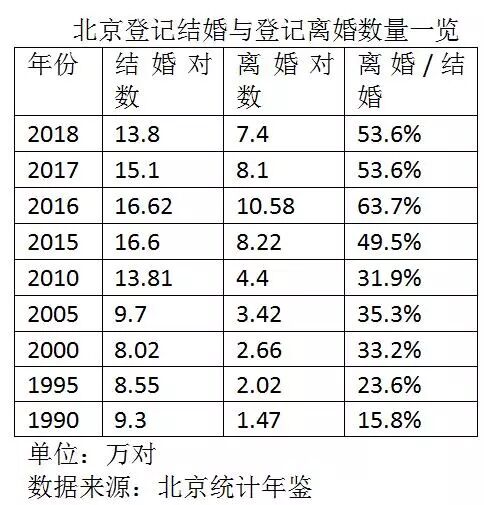广东省婚姻家庭建设协会秘书长、红树林心理咨询中心首席心理师叶英扬对21世纪经济报道记者表示。 而到了2015年,这一数据就逼近了50%,并在随后的2016、2017和2018年都保持在50%以上,真正进入“两对登记结婚就有一对离”的时代。 原文链接: