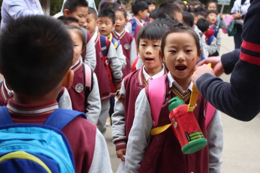 早上8点,同学们在老师和家长的带领下,举着鲜艳的队旗,穿着统一的服装,佩戴着鲜艳的红领巾,背着满满的小背包,排着整齐的队伍,喊着响亮的口号,唱着动听的歌声,精神饱满地踏上了征程。