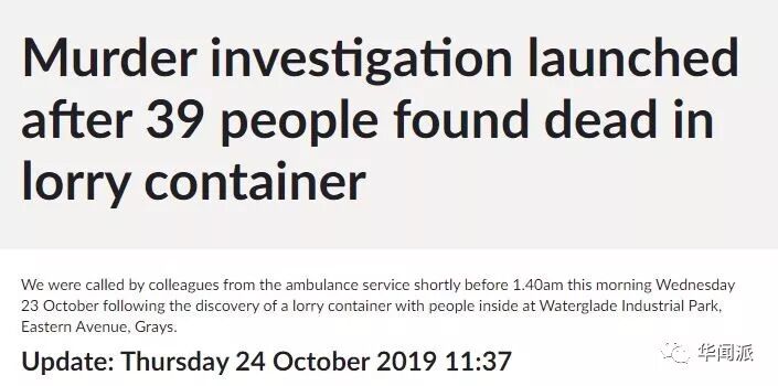 ▲埃塞克斯警方在早上11:37发布了一则关于事件的最新通报,认为卡车内39具遗体全部为中国人