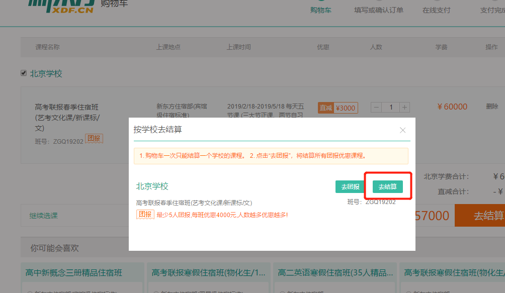 点击加入购物车,跳转到结算页面,确定无误后点击去结算