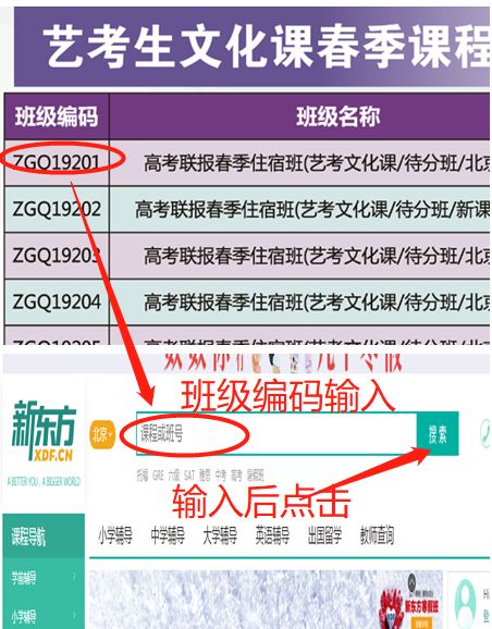 课程搜索框内输入以下对应班级编码即可快速报班。