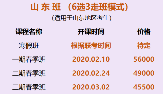 2、新课标班与山东班寒假班根据联考时间另行确定开班时间,价格待定