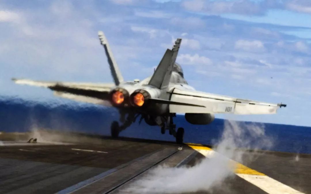 图为F/A-18大黄蜂战斗机在侧风下起飞