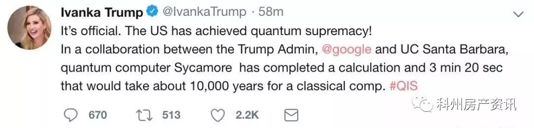 这是量子计算领域的里程碑事件:谷歌在被称为「量子优越性」方向上的重大突破研究,登上了《自然》杂志 150 周年版的封面。谷歌 CEO桑达尔·皮查伊 (Sundar Pichai) 接受MIT采访称此次的研究成果对谷歌来说具有“里程碑”式的意义,并将其与莱特兄弟发明飞机时的首次 12 秒成功试飞相比。与此同时,甚至连特朗普的大女儿伊万卡都忍不住第一时间发出贺电: