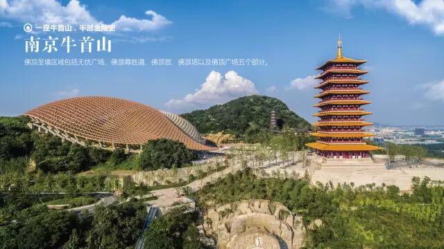 上午:游览中国佛教名山【牛首山】(游览时间约2小时,不含电瓶车费用)牛首山文化底蕴深厚,是佛教牛头禅宗的开教处和发祥地。是南京市投资60多亿精心打造的超级景区,“江苏十大新景区”,幽美秀丽的自然风光,宏传壮观的佛文化建筑群,精美绝伦的佛文化艺术,举世无双的佛顶骨舍利...让你目不暇接,叹为观止!