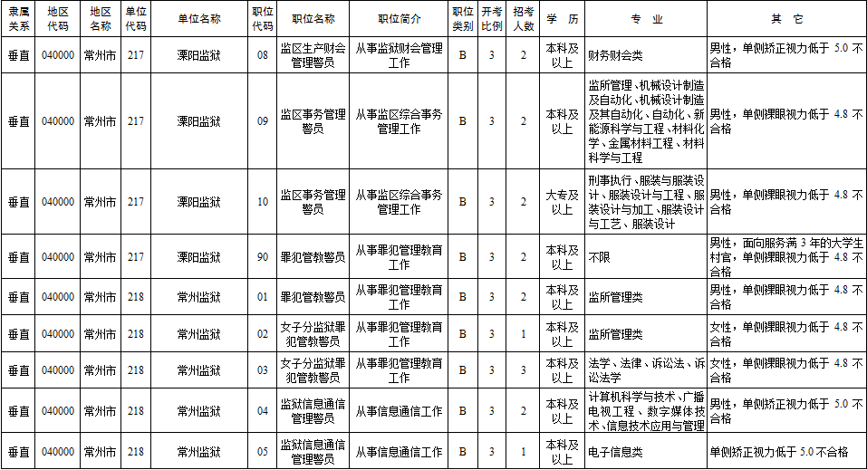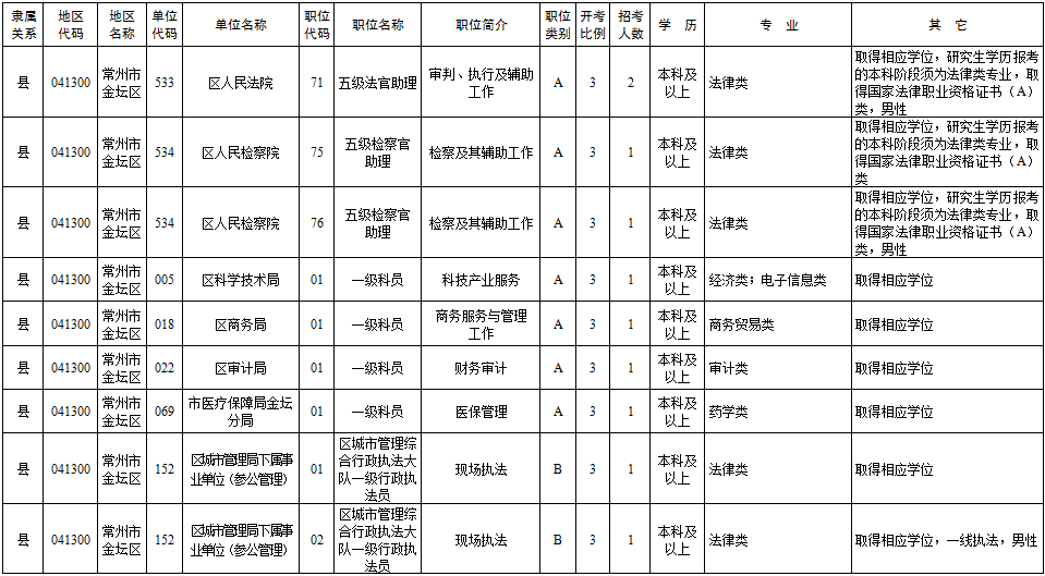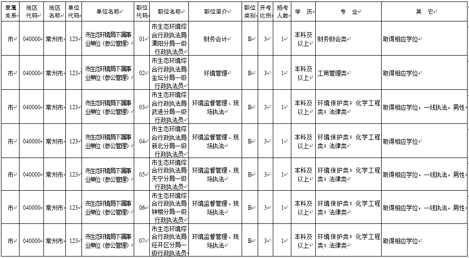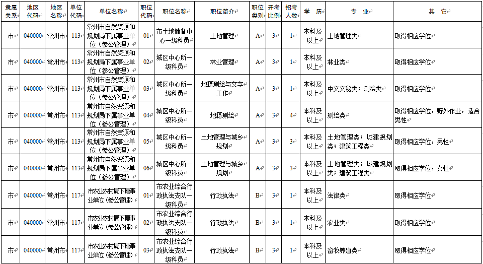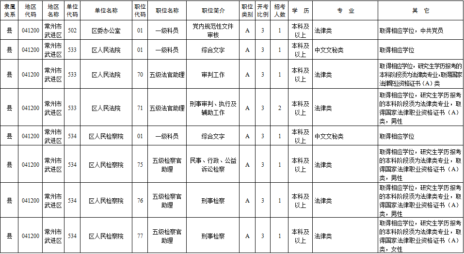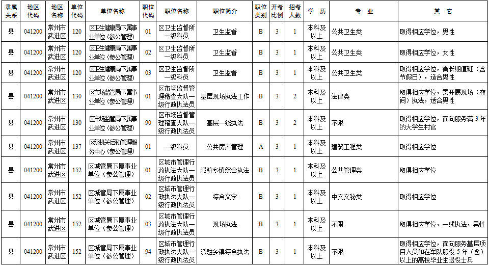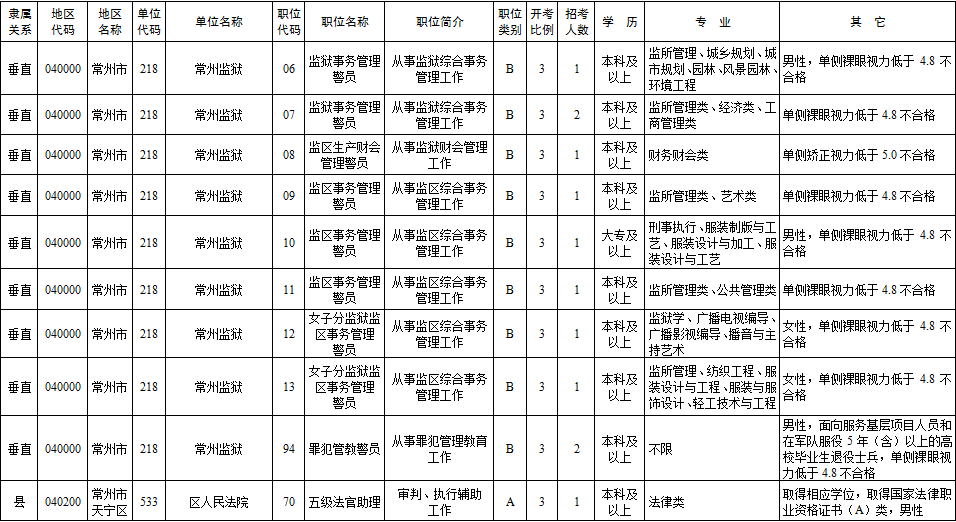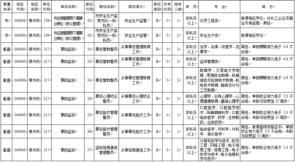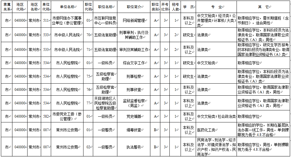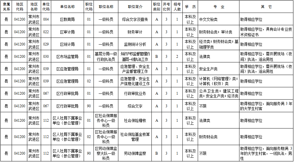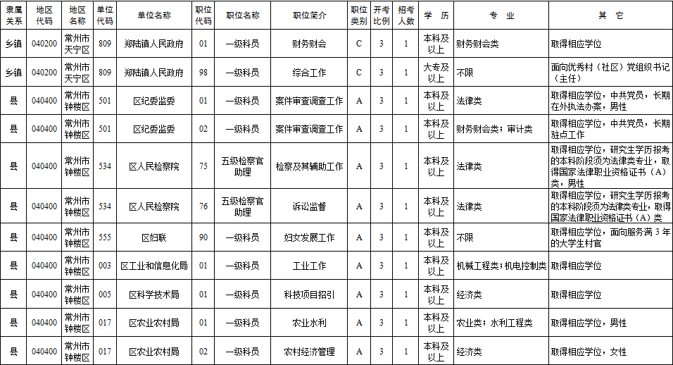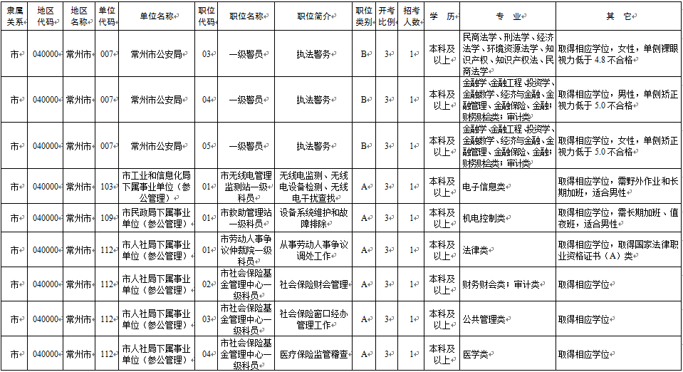 2020年常州市考录职位简介表