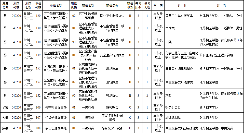常州小伙伴关心的招考人数、职位表