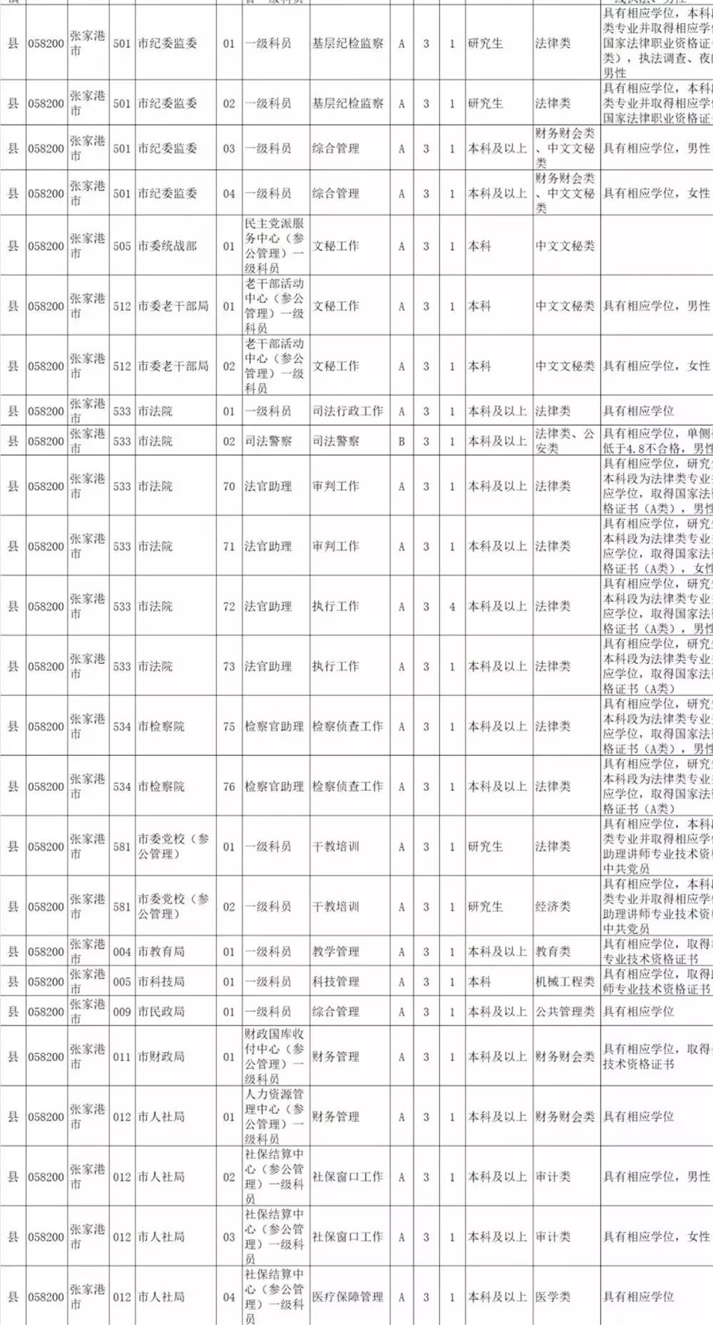 小编看了一下今年的招录职位信息