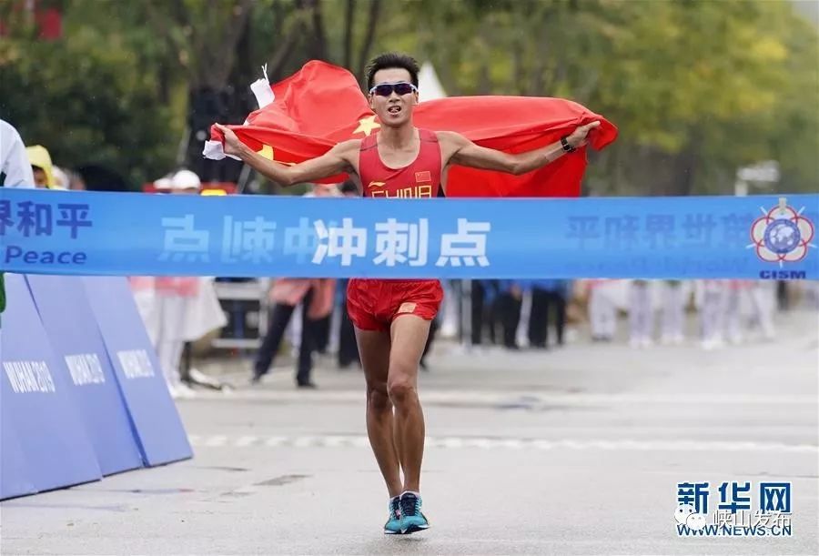 10月25日,中国选手王钦在比赛中冲刺。当日,在武汉举行的第七届世界军人运动会田径项目男子50公里竞走决赛中,中国选手王钦以3小时51分56秒的成绩获得冠军。(来源:新华网)