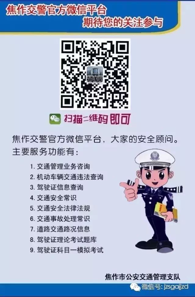 焦作交警部门希望广大新闻媒体和网友,继续加强警媒联动,大力宣传、报道交警部门的主要交通整治行动,持续曝光各类交通违法行为,弘扬交警正能量,共同提高广大交通参与者的文明交通意识和安全法制意识,创造安全、畅通、文明、有序的交通出行环境。