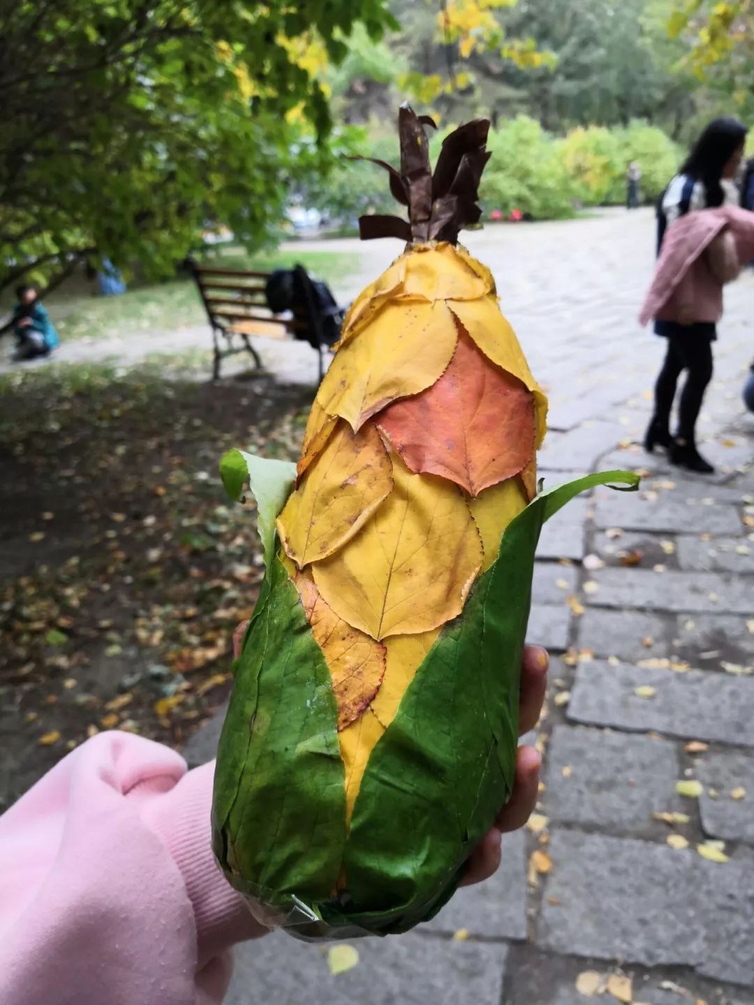 沙沙落叶声中大家伴着欢声笑语,完成了各自的秋叶作品,天马行空的创意和独属于秋天的斑斓色彩为幽静少人的树林增添了更多活力,让我们来欣赏一下这些别具一格的作品吧。