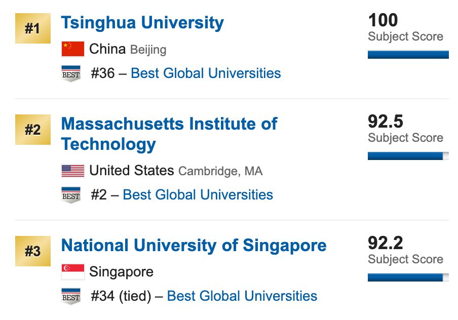 如果你已经有了明确的专业方向,那么世界大学专业排名就非常有参考性了,下面是USNEWS专业榜单(部分)?