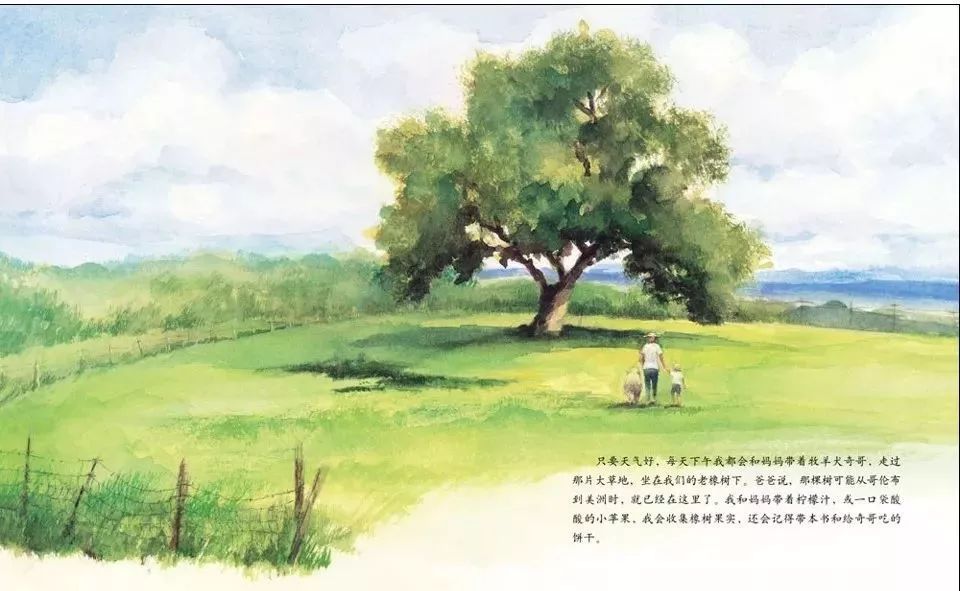 女孩艾莉丝特别喜欢农场上靠近马路的那棵老橡树。只要天气好,每天下午艾利丝都会和爸爸妈妈还有牧羊犬奇哥一起坐到老橡树下。一家人有说有笑,吃着零食,讲着故事,好不惬意。说实在的,我真的很羡慕这一家人,抛弃城市的喧闹,远离钢筋混凝土,在宁静的乡村拥有自己的一个安乐窝。一家人呼吸着新鲜空气,经营自己的农庄,生活恬静充实。