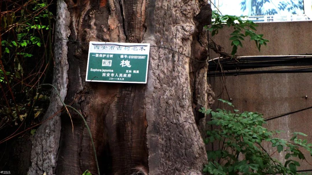 据了解,这棵古槐如今已走过1100多个春秋,是西安市受保护的古树名木之一,编号为610103135007。古槐树根部分,被围在一个近一米高的水泥护墩里。树干看上去需三人合抱,已有些枯朽中空,不过枝干仍苍劲有力,树叶繁盛茂密。