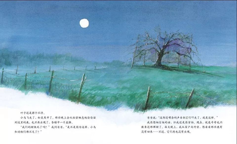 姑且不说这本书的教育意思,单从“老树”这个话题来讲,它就是一本十分适合在深秋时节亲子共读的书。为何这么说呢?我们来看一条网上家长的评论: