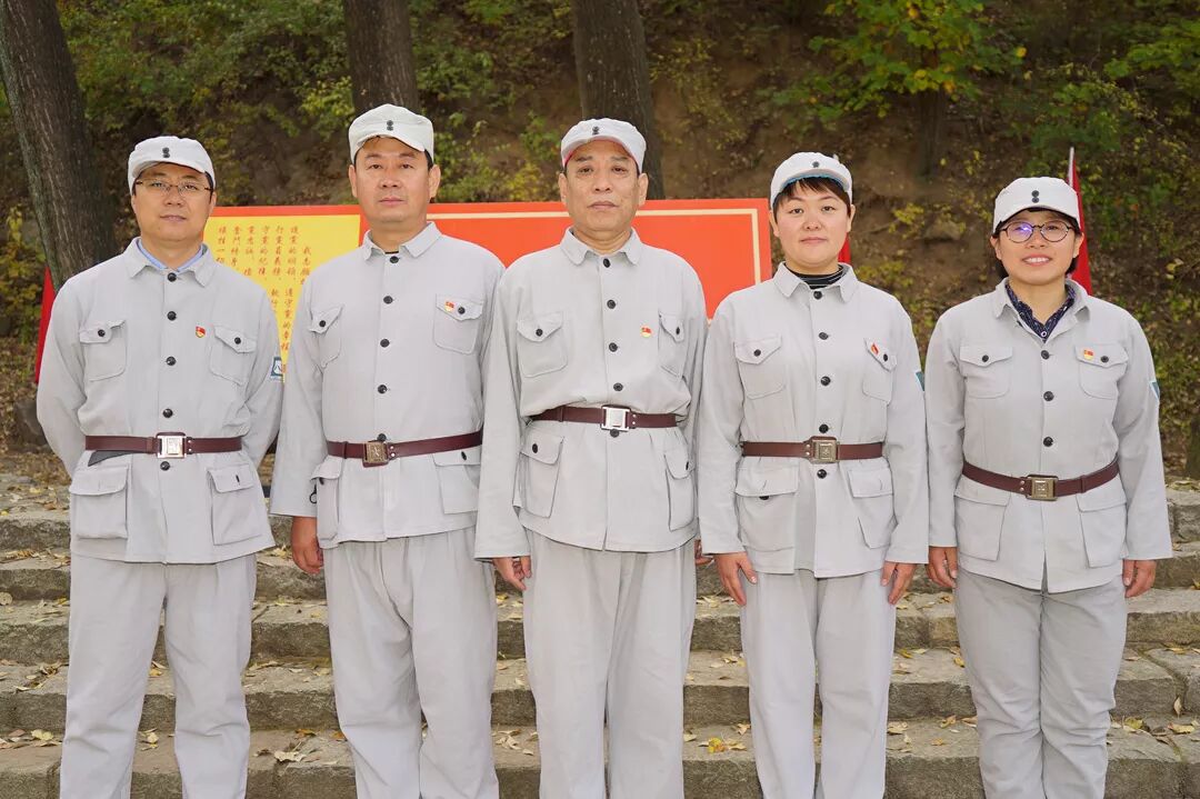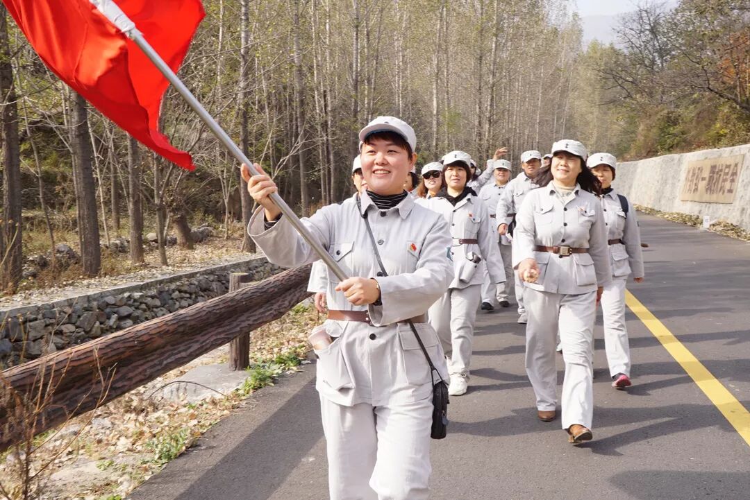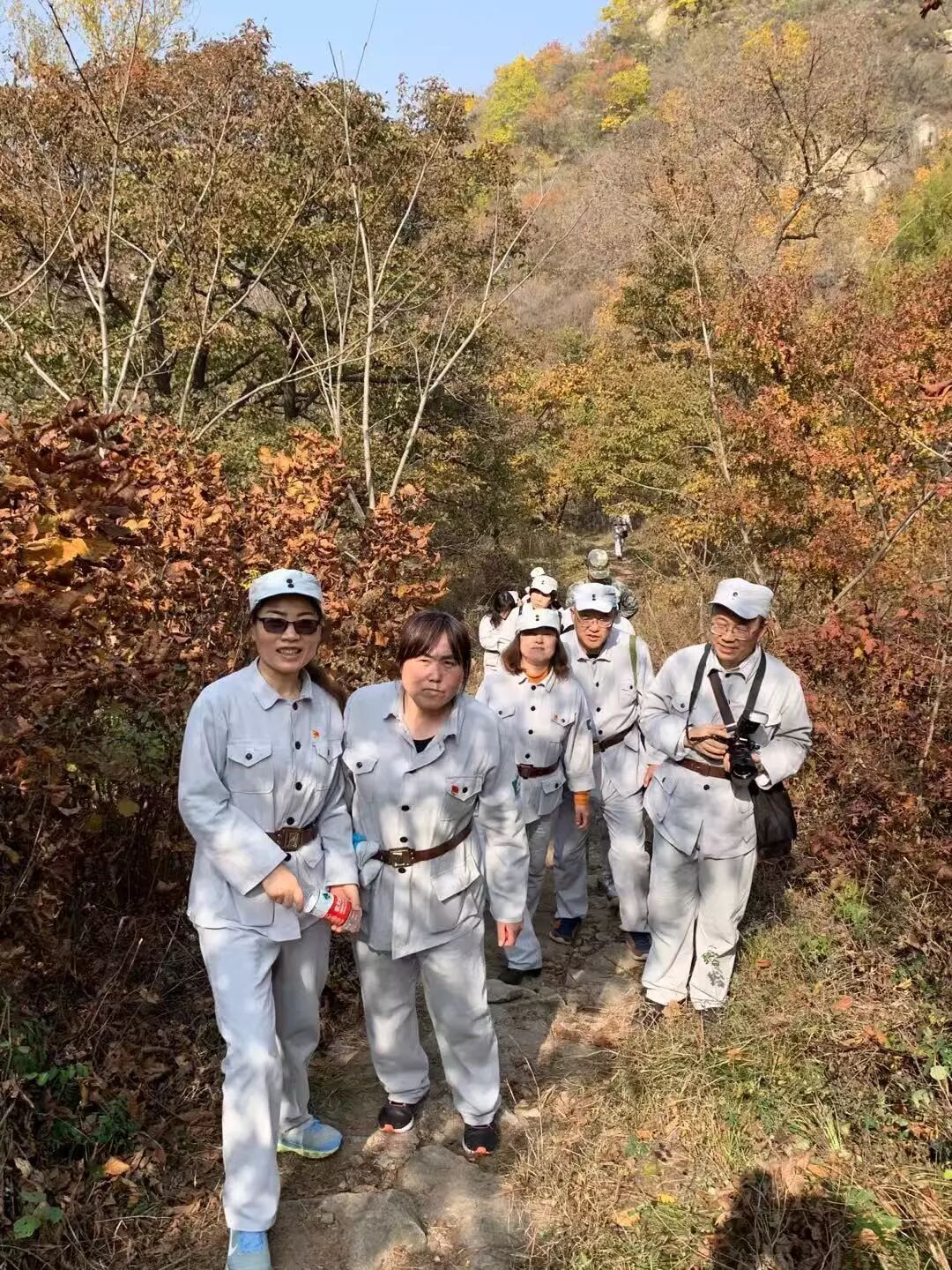 不忘初心,牢记使命,重走抗战行军路线。沿着革命先驱的足迹,老师们从沙塘沟村出发,途经磨子沟到达霹破石村,全程行军3.4公里,翻山越岭重现当年的战斗场面。一路上,大家高唱《三大纪律八项注意》、《团结就是力量》等革命歌曲;山路崎岖,同志们互相帮助互相鼓励,走到终点时像当年打了胜仗一样激动欢呼。