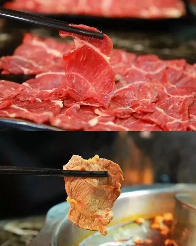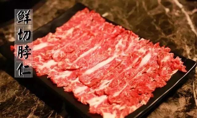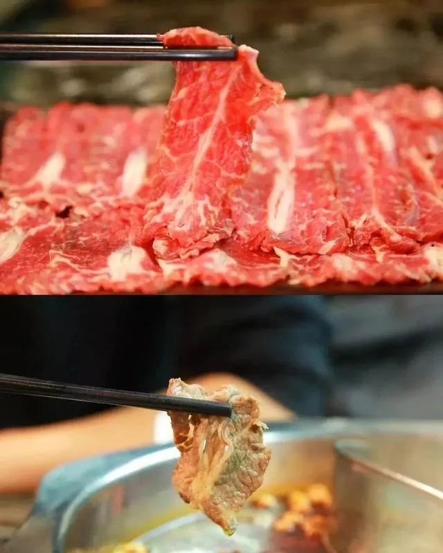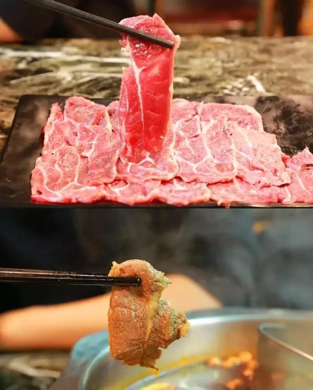 这肉完全不用担心新鲜度,全部现点现切。而且涮煮时才能真正感受到新鲜牛肉的鲜甜多汁,口感丰富。