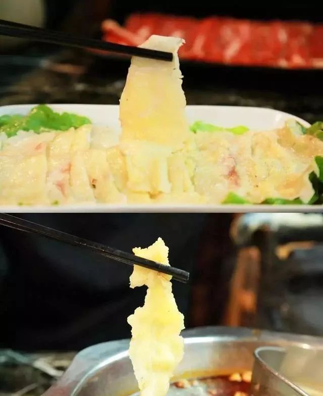 真正爱牛肉火锅的都不会错过胸口油,看似油腻腻,却没想到口感是如此爽脆。