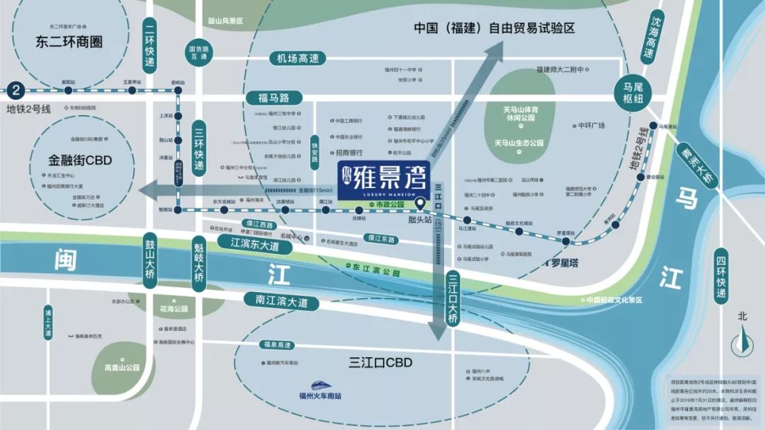 城市向东,湾居前沿。招商·雍景湾屹立福州东江滨,独占三江口大桥鳌头,咫尺地铁二号线延伸线【朏头站】。项目坐拥东江滨生活圈,西邻金融街万达,共享三江口千亿配套,执掌福州东“黄金三角区”,优享福州五区利好叠加,得天独厚的交通区位优势,成就新时代生活主场。